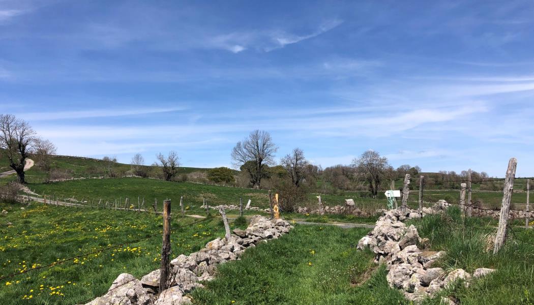 Quelques enjambées sur le célèbre chemin de Saint-Jacques de Compostelle, d'autres sur dans le domaine boisé du Fer à Cheval et évidemment des tronçons sur des drailles à travers pâturages: un combo 100% Aubrac!